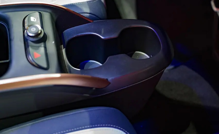 Điểm nhất chính ở vị trí trung tâm bảng điều khiển là màn hình giải trí kích thước 12,9 inch hướng về phía người lái. Bảng taplo và và ốp cửa được bọc da kết hợp thêm một vài chi tiết mạ bạc trang trí càng tăng phần sang trọng.
